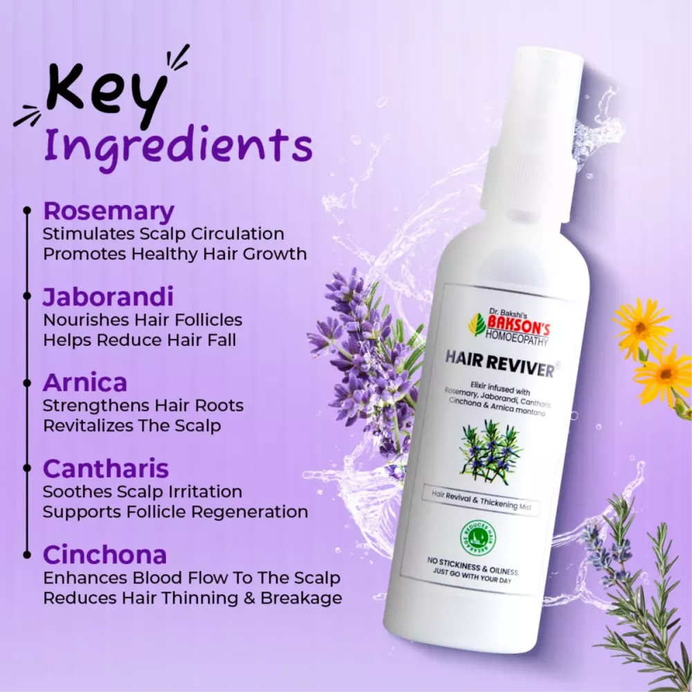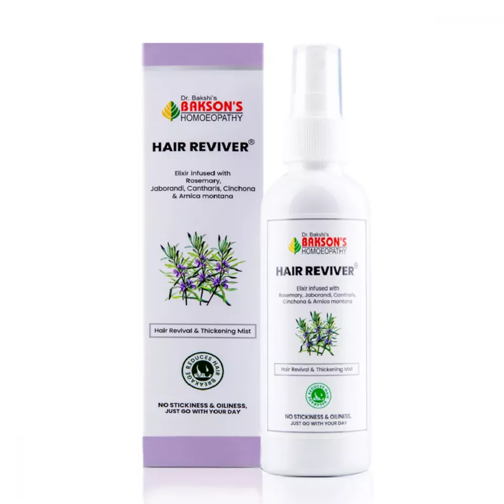 Bakson Hair Reviver is a homeopathic hair care and regrowth treatment formulated to address various hair-related issues such as hair fall, thinning, dandruff, and overall scalp health.
