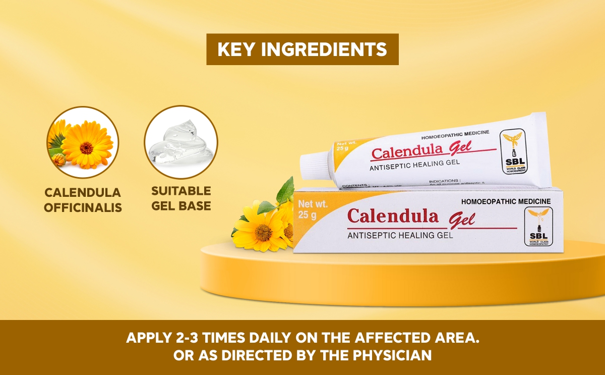 SBL Calendula Gel is one such trusted preparation enriched with the natural healing power of Calendula officinalis, it is known for its soothing, antiseptic, and tissue-repairing qualities. With its gentle action, this gel helps relieve pain, infection, and supports recovery in a wide range of minor skin injuries. It is often regarded as the supportive assistance for burns and general skin care after injury.