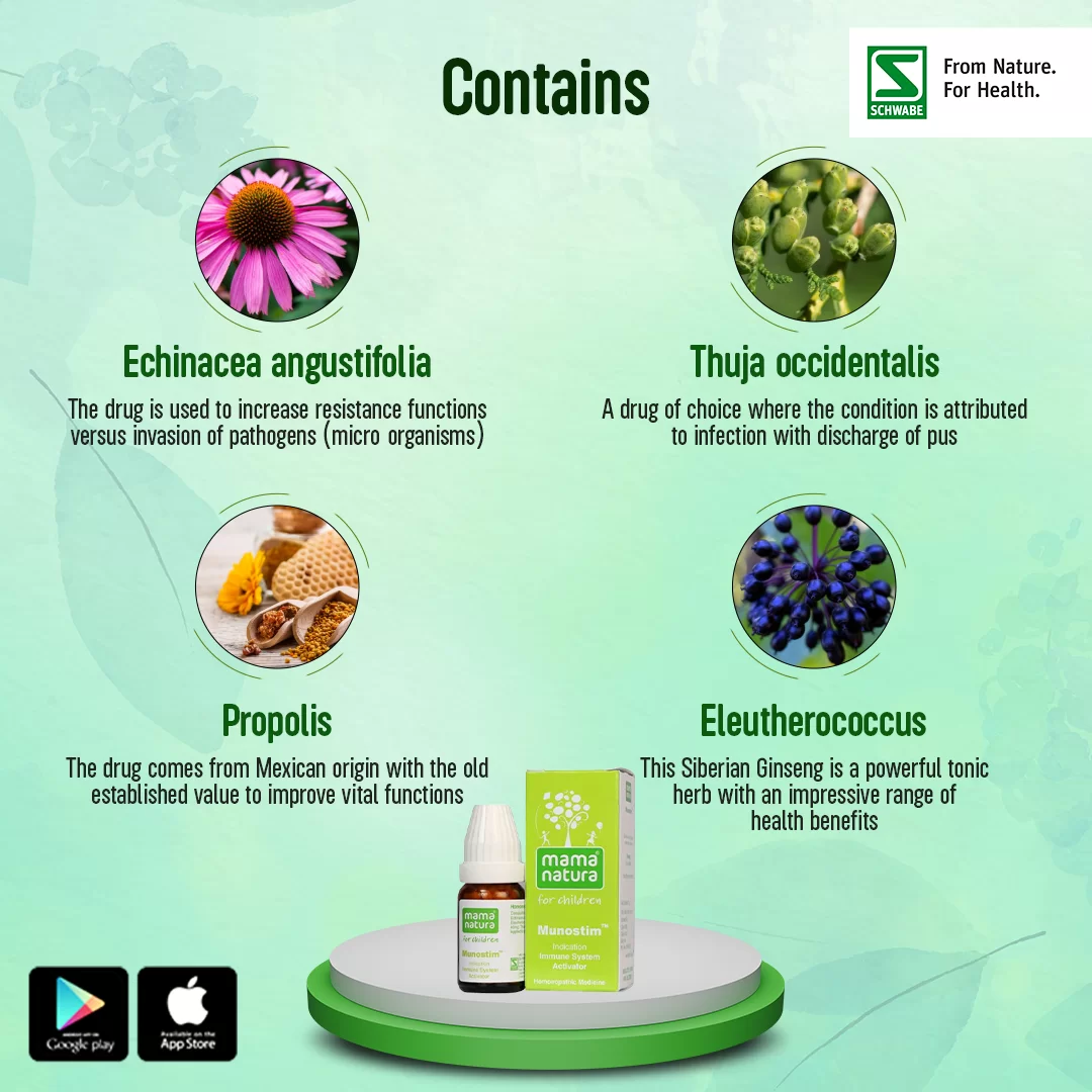 Today’s times require, now more than ever, a strong immune system. Newer and more virulent strains of pathogens are regularly being detected. The era of infectious diseases was once thought over with the generous usage of antibiotics; it seems like this era has returned with greater ferocity and fatality rates. It is therefore of supreme importance that we develop strong immune systems to ward off these pathogens. A nutritious diet is essential to build strong immunity. It is virtually not possible to be immunologically strong when one is living on poor dietary habits or malnutrition. Certain foodstuffs can be incorporated into a balanced diet to enhance immune function. Citrus fruits are well-known to enhance immunity. Being rich in antioxidants, they help deal with inflammation and ward off infections. Green leafy vegetables (spinach, broccoli, cabbage) perform a similar function. Fish, eggs and yogurt are similarly beneficial to develop a good immune response. Nuts like peanuts, walnuts and almonds can be included in the diet also, especially in the winter season. In summers, coconut water can be taken daily to build up immunity. Garlic is well-known to build immunity. It can be included as an ingredient in a variety of dishes to benefit from its immune-enhancing properties. Other beneficial food items for immune development are berries, peas, honey and fruits. It is clear that there is a wide range of options to choose from and there is something for everyone. Certain signs and symptoms help us to identify if a person has low immunity. The most important, perhaps, is a complete absence of developing fever for years despite being repeatedly exposed to infections. Fever is an immune response and one who rarely develops fevers must get checked. Other signs are repeated infections even by the least virulent pathogens. Chronic constipation, acidity, regular loose stools are all signs of poor immune function. Dryness of eyes, cold hands, joint pain, headaches, rashes and unexplained weight loss can all be attributed to a poor immunity. It is not necessary that one person may develop all these signs and symptoms; these are the ones most commonly seen. Homeopathy can help an individual develop strong immunity. For years it has been theorized that homeopathy acts on the immune system. A person who has taken homeopathy over the years rather than allopathy is frequently seen to have a better immunity. Homeopathic medicine for immune system enhancement can be taken along with a healthy diet to develop better and stronger immunity, especially in children. Munostim homeopathic medicine by Schwabe India is one such formulation known to act swiftly and efficiently. Munostim stimulates immune system and develops a strong immune ability. It makes a person better equipped to resist infections and helps prevent infections in children. Children are exposed to all kinds of pathogens on a daily basis and with Munostim their exploring nature need not be a cause for concern. The components of Munostim are: