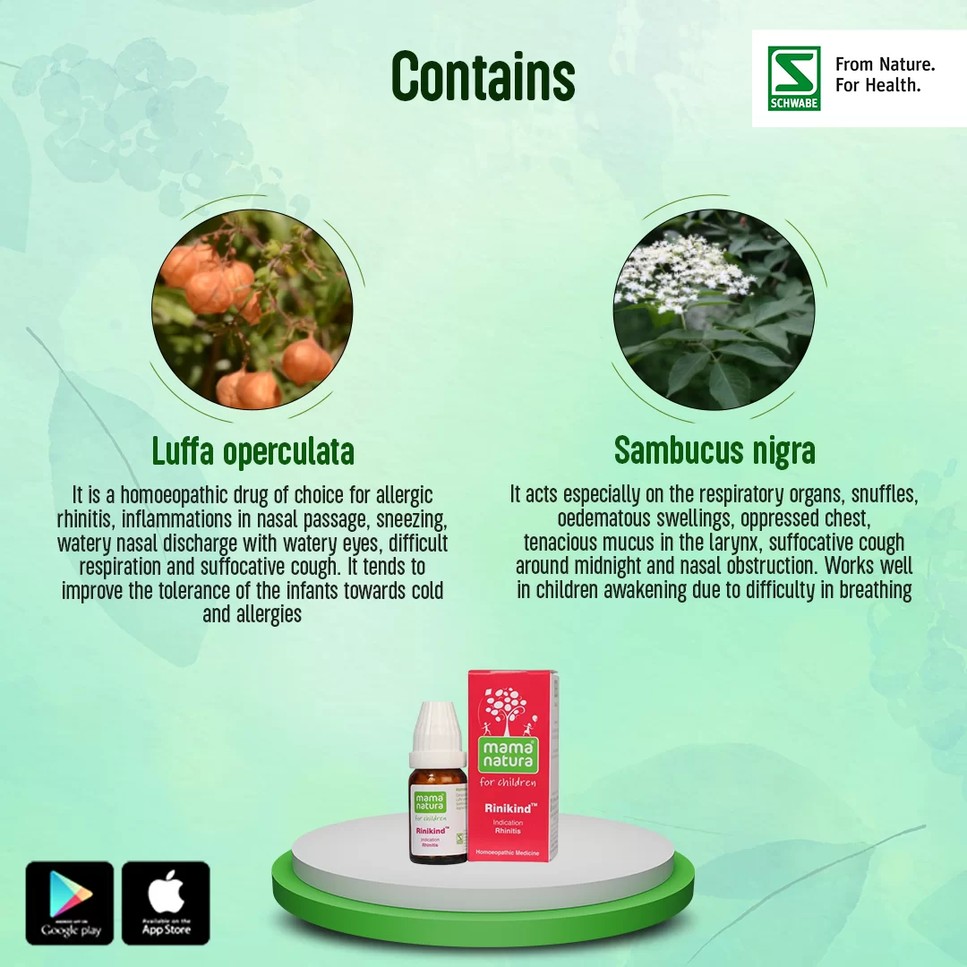RinikindTM is a homeopathic medicine for nasal congestion, blockage, rhinitis, and sinusitis, and has proven to provide quick alleviation. It also works wonders in cases such as wheezes of babies, suffocative attacks or dry coryza, etc. It is available in 10g bottle at Schwabe. It effectively calms rhinitis and other bothersome symptoms, for example, sniffling, nasal release and watery eyes in youngsters.