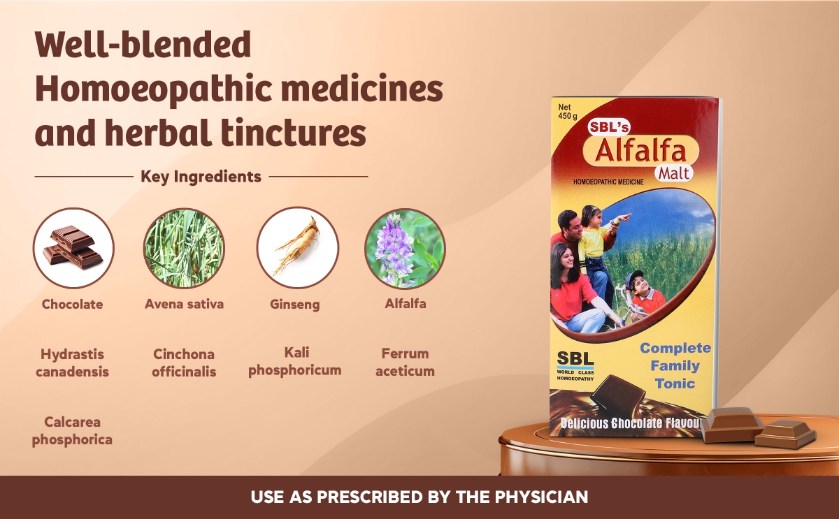 Alfalfa Malt is a potent energy stimulant enriched with minerals, amino acids fortified, and potent homoeopathic medicinal herbs well blended in a delicious chocolate-flavored malt base.
