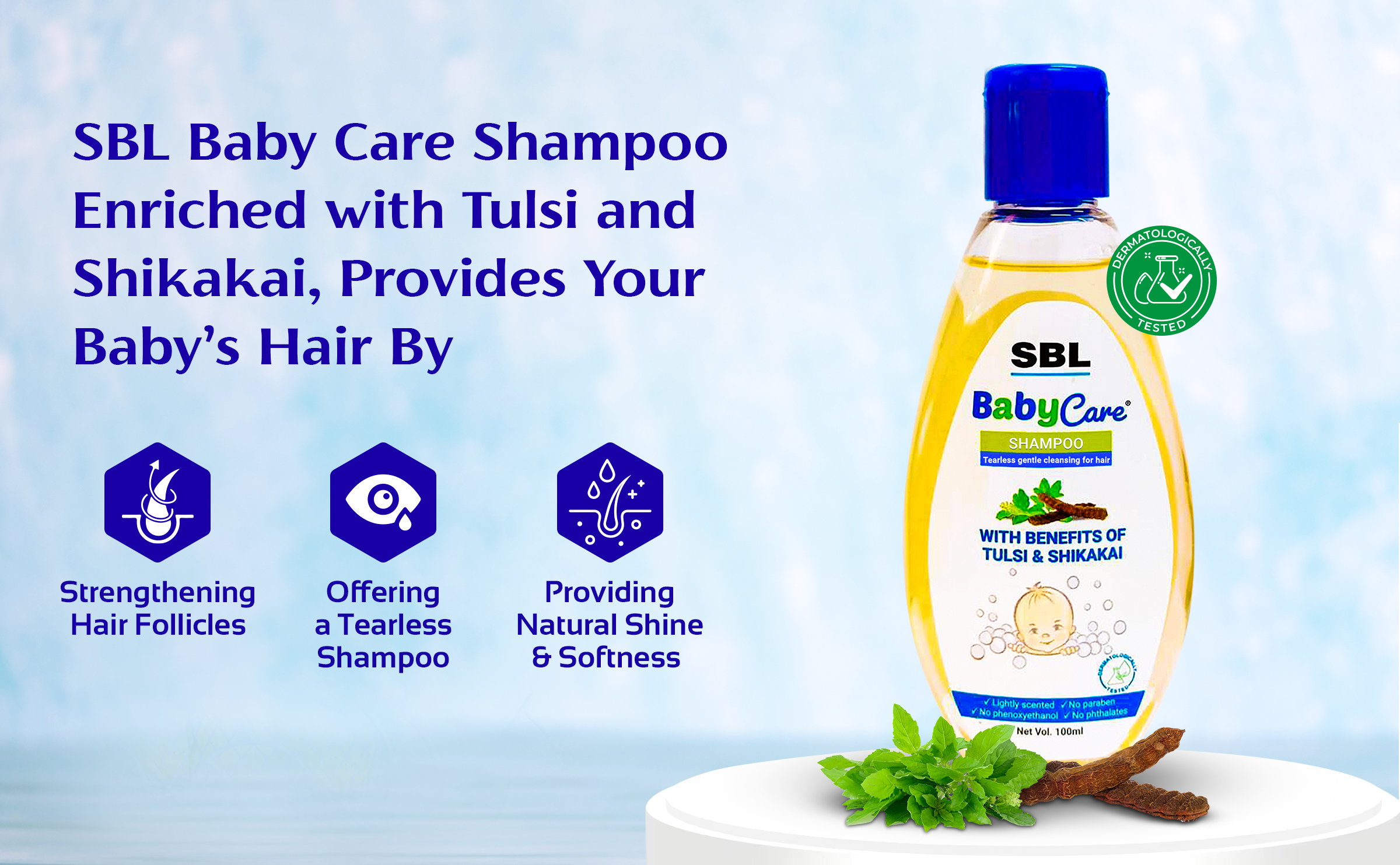 SBL Baby Care Shampoo comes with the goodness of Tulsi and Shikakai. It reduces itchiness and dryness, strengthens the hair follicles, and brings shine and softness to the baby’s hair. Therefore fearlessly lather baby’s hair right from birth with SBL Baby Care Shampoo. It also nourishes the hair root and improves the luster of hair. This is dermatologically tested and proven safe for babies.