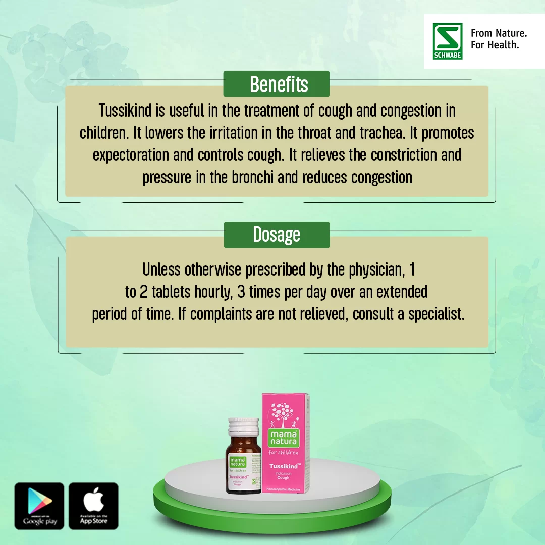In case your doctor prescribes Tussikind homoeopathic medicine for your specific symptoms of cough-cold or cough-cold-fever combo, you can get it online from Schwabe India.